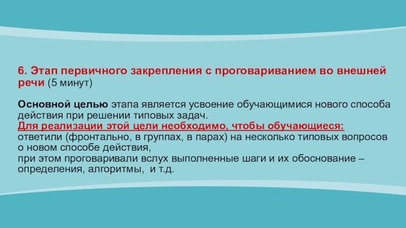 6. Этап первичного закрепления с проговариванием во внешней речи (5 минут)