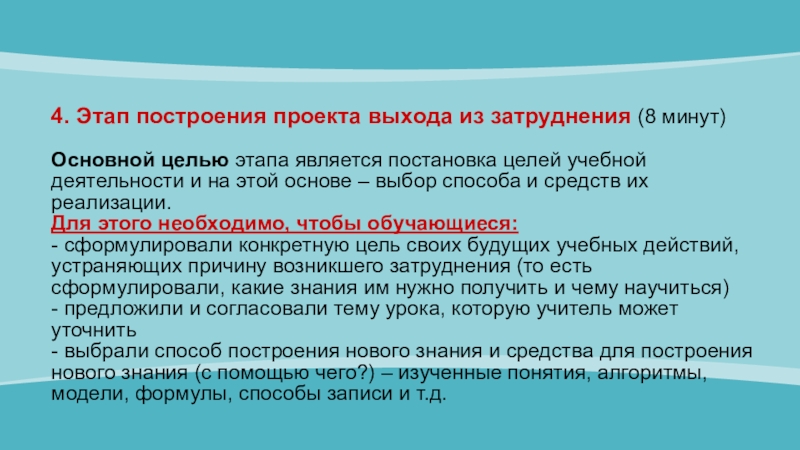4. Этап построения проекта выхода из затруднения (8 минут)