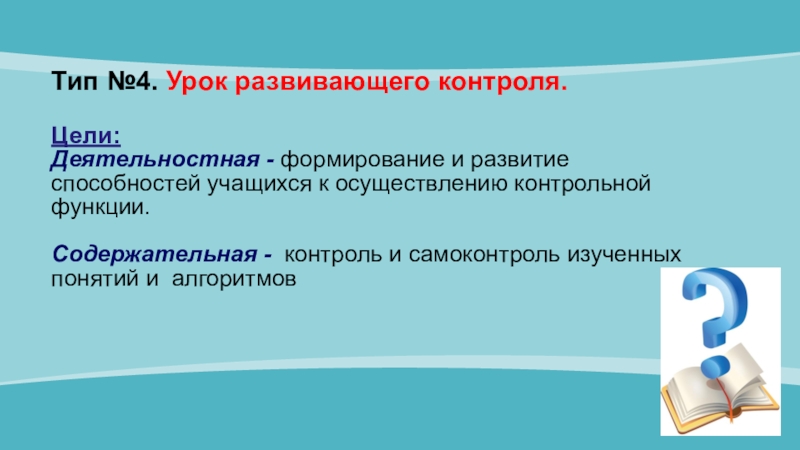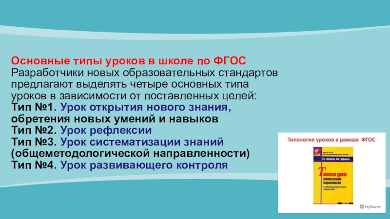 выделять четыре основных типа уроков в зависимости от поставленных целей: