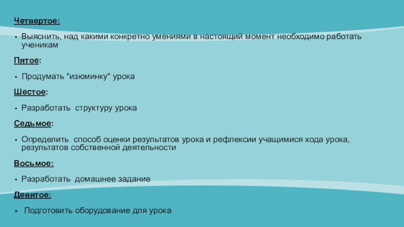 6. Основная деятельность учителя не на уроке, а в процессе подготовки к нему, в подборе материала и сценировании урока.