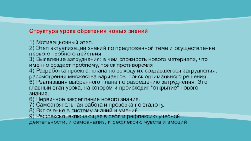 урока. Структура уроков введения нового знания в логике системно-деятельностного подхода.