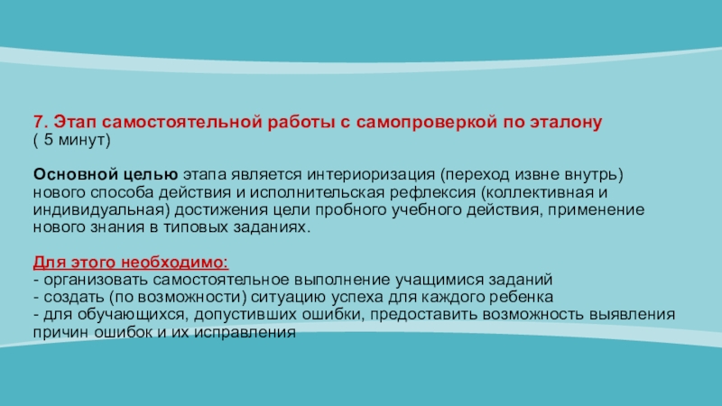 7. Этап самостоятельной работы с самопроверкой по эталону