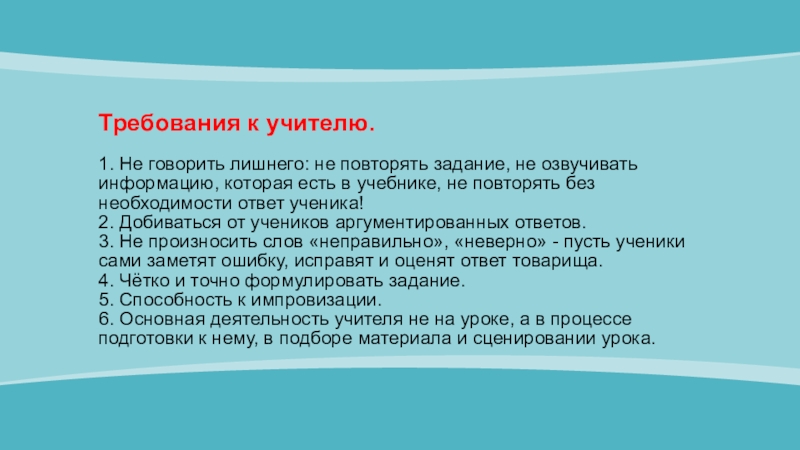 озвучивать информацию, которая есть в учебнике, не повторять без необходимости ответ ученика!