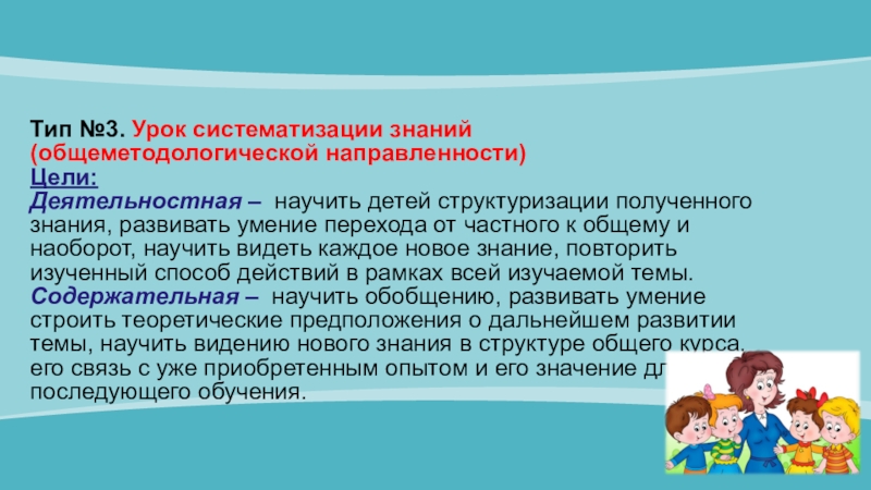 Слайд 11Тип №3. Урок систематизации знаний (общеметодологической направленности)