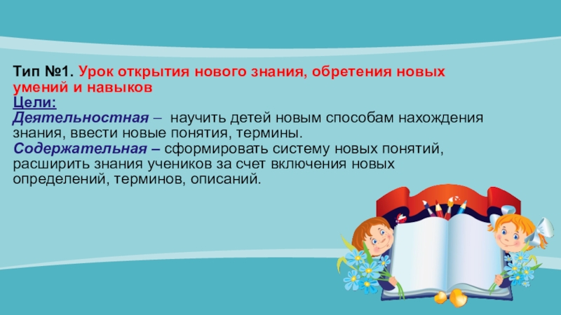 Тип №1. Урок открытия нового знания, обретения новых умений и навыков