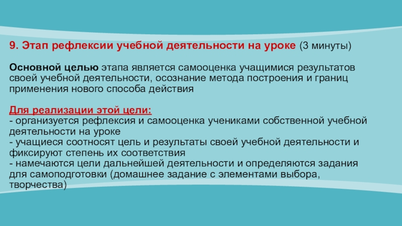 9. Этап рефлексии учебной деятельности на уроке (3 минуты)