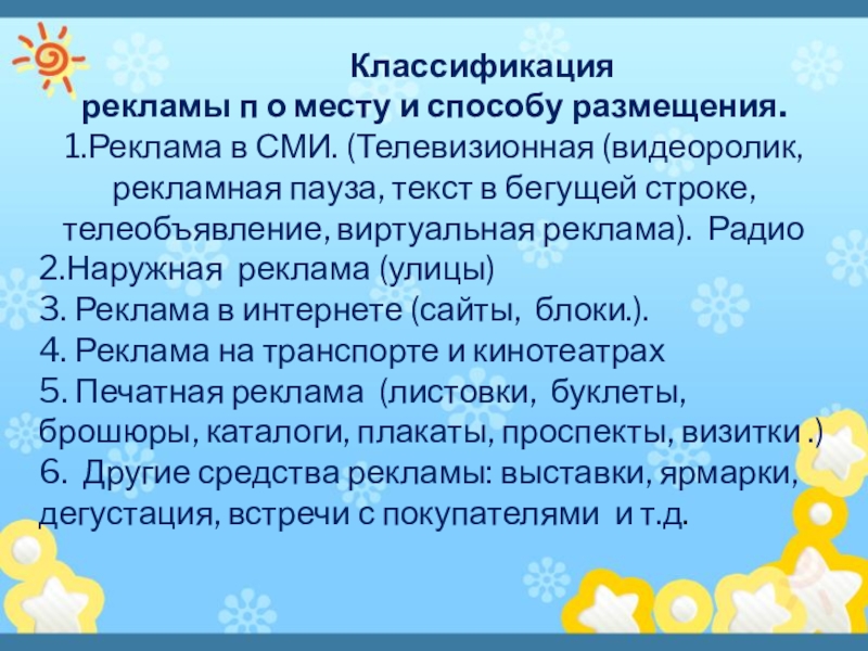 1.Реклама в СМИ. (Телевизионная (видеоролик,