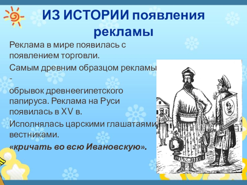 Слайд 5ИЗ ИСТОРИИ появления рекламы