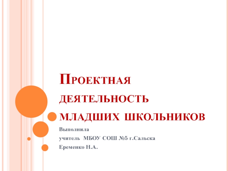 Проектная деятельность младших школьниковВыполнила учитель МБОУ СОШ №5 г.СальскаЕременко Н.А.