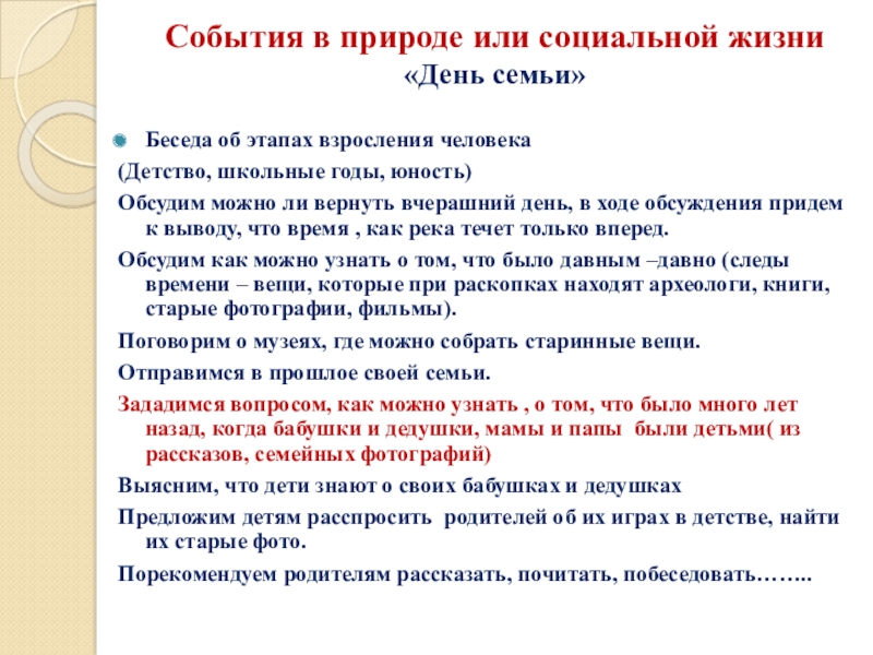 Порекомендуем родителям рассказать, почитать, побеседовать……..