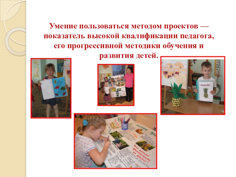 Слайд 18Умение пользоваться методом проектов — показатель высокой квалификации педагога, его прогрессивной