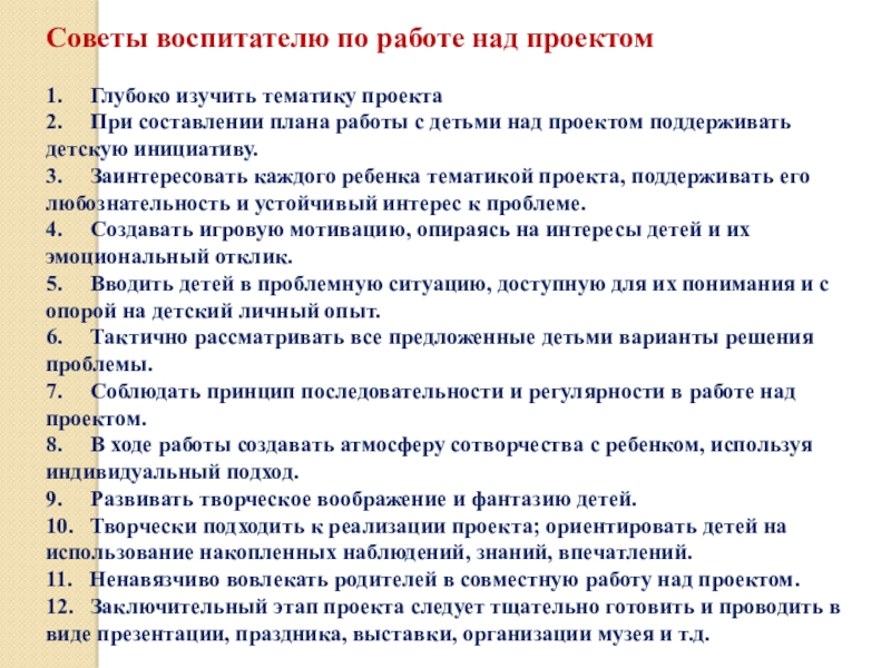 11. Ненавязчиво вовлекать родителей в совместную работу над проектом.