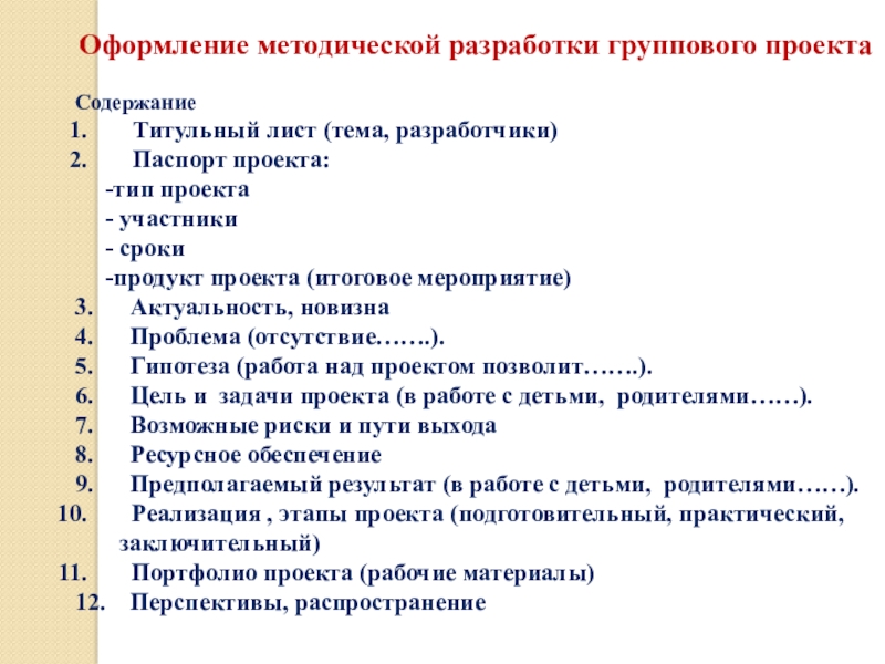 12. Заключительный этап проекта следует тщательно готовить и проводить в виде презентации, праздника, выставки, организации музея и т.д.