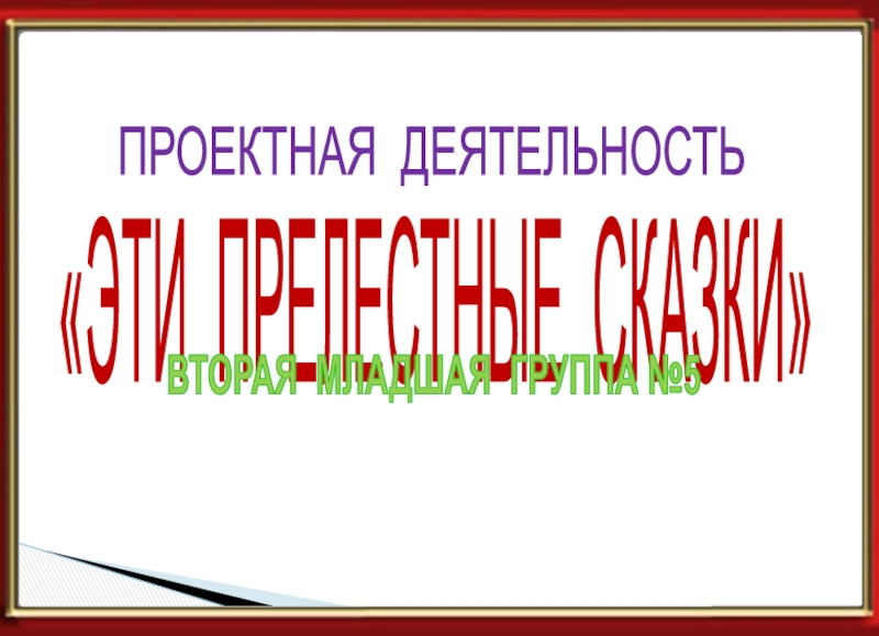 ПРОЕКТНАЯ ДЕЯТЕЛЬНОСТЬ«ЭТИ ПРЕЛЕСТНЫЕ СКАЗКИ»ВТОРАЯ МЛАДШАЯ ГРУППА №5