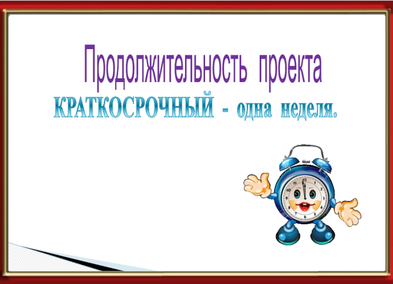 Продолжительность проектаКРАТКОСРОЧНЫЙ - одна неделя.