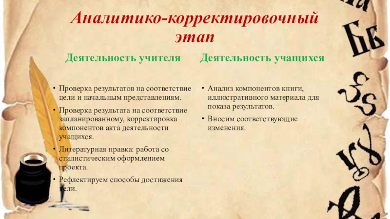Анализ компонентов книги, иллюстративного материала для показа результатов.