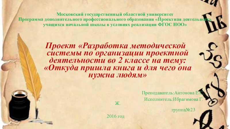 Проект «Разработка методической системы по организации проектной деятельности во 2 классе на тему: «Откуда пришла книга и для чего она нужна людям»