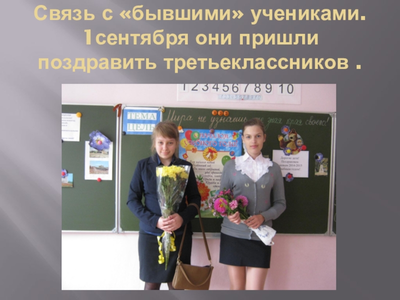 Слайд 8Связь с «бывшими» учениками. 1сентября они пришли поздравить третьеклассников .