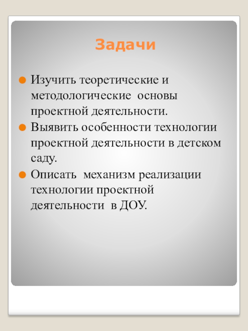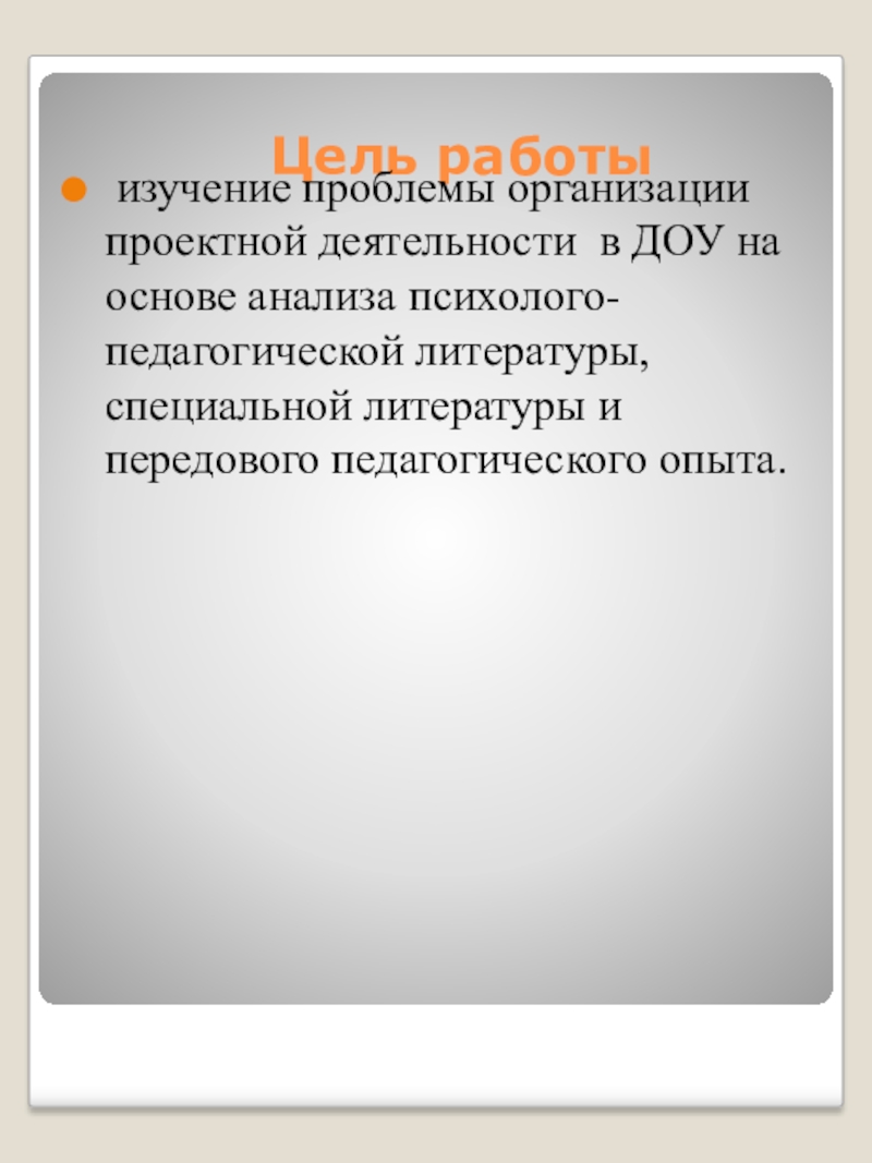 изучение проблемы организации проектной деятельности в ДОУ на основе