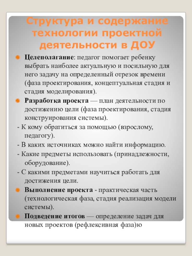 Слайд 8Структура и содержание технологии проектной деятельности в ДОУ