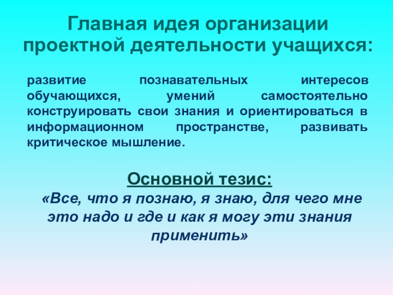 «Все, что я познаю, я знаю, для чего мне это надо и где и как я могу эти знания применить»