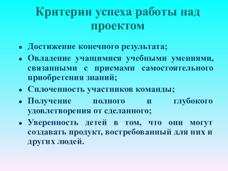 Учащиеся с большим интересом начинают подходить к изучению программного материала, понимая, что он им необходим в дальнейшей работе по проекту.