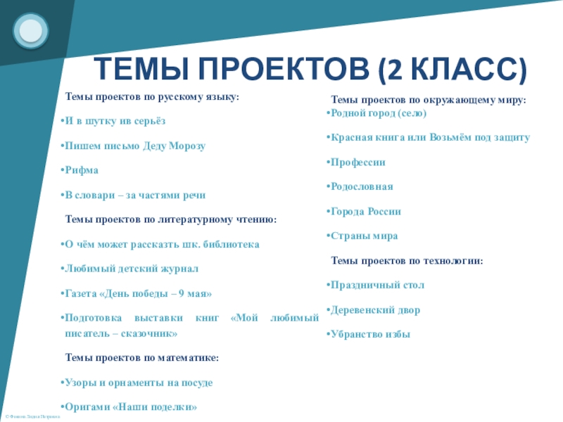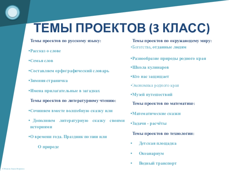 Темы проектов по окружающему миру: