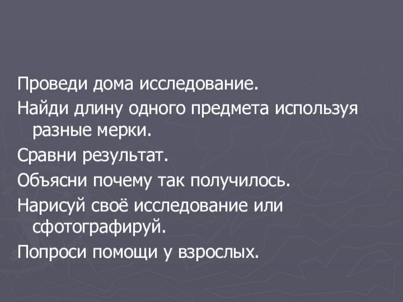 Исследователи: провести исследование, измерив длину предметов разными мерками, сравнив результаты, сделать выводы после измерений. Найти моменты,