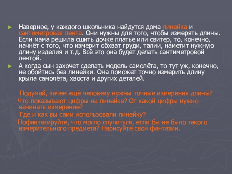 Слайд 25Наверное, у каждого школьника найдутся дома линейка и сантиметровая лента. Они