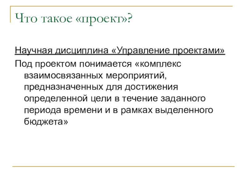 Под проектом понимается «комплекс взаимосвязанных мероприятий,
