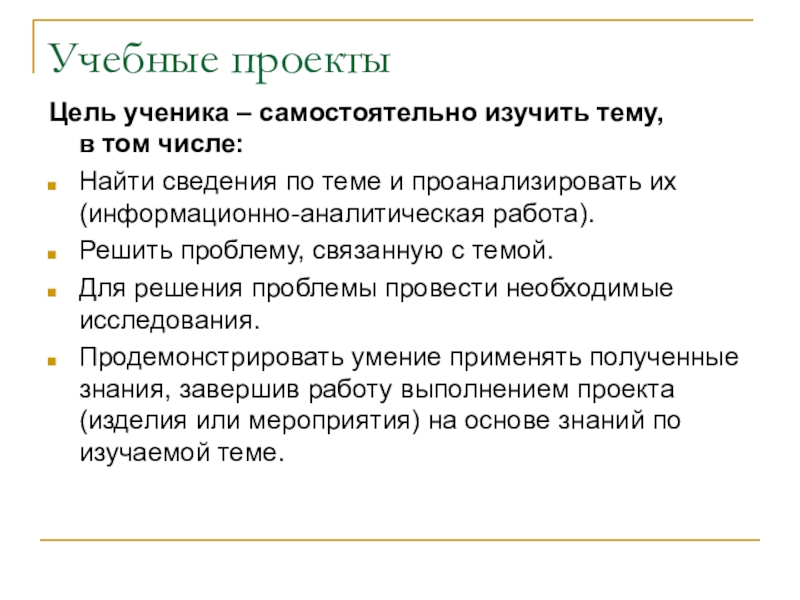 Разнообразные действия при работе над проектами можно рассматривать как аналог деловой деятельности взрослых, как постоянный источник жизненных ситуаций, требующих применения имеющихся у школьника умений для их решения.