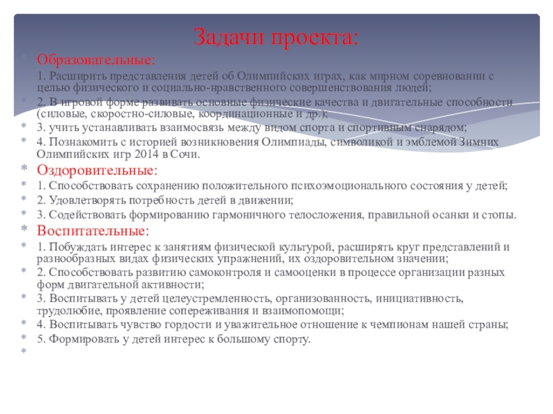 4. Познакомить с историей возникновения Олимпиады, символикой и эмблемой Зимних Олимпийских игр 2014 в Сочи.