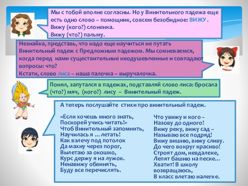 А теперь послушайте стихи про винительный падеж.