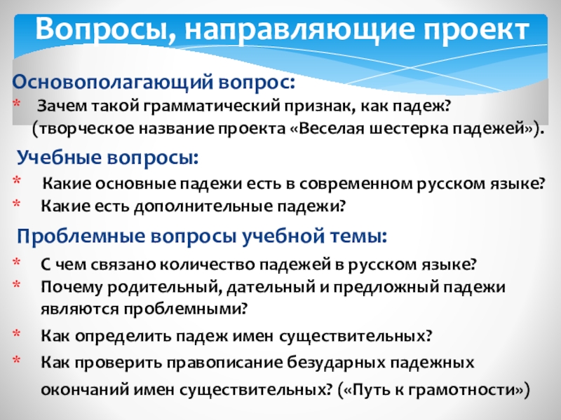 Вопросы, направляющие проект