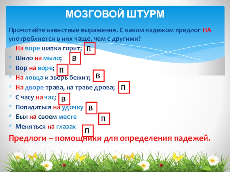 об, в, во, на, при; а слово – помощник: думаю или мечтаю.