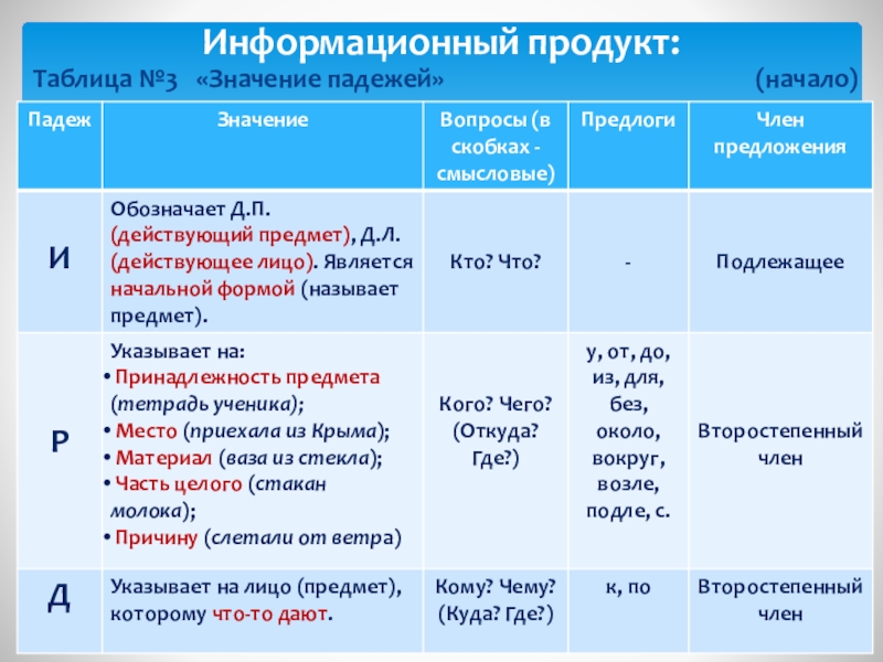 Основные падежи русского языка