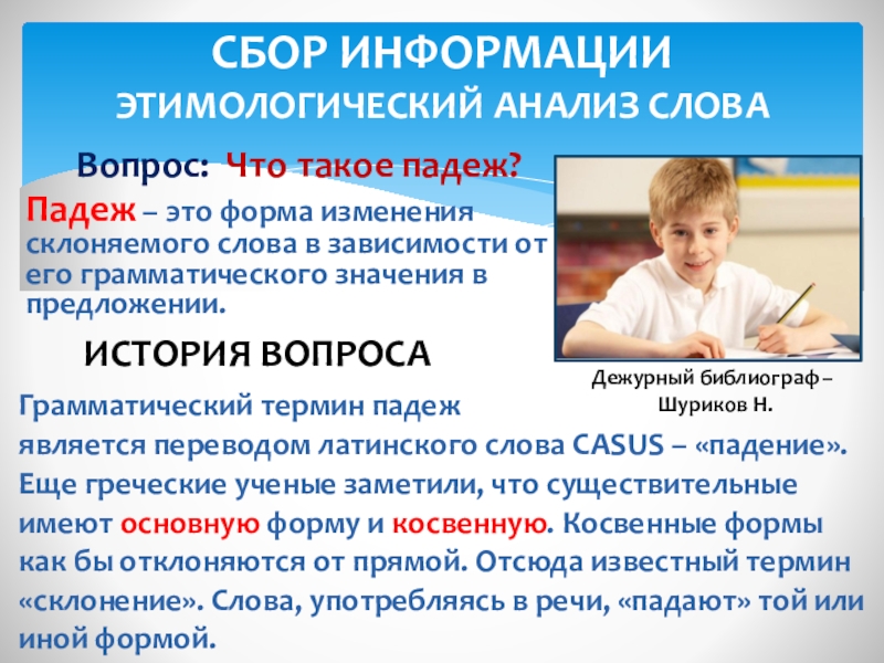 как бы отклоняются от прямой. Отсюда известный термин «склонение». Слова, употребляясь в речи, «падают» той или иной формой.
