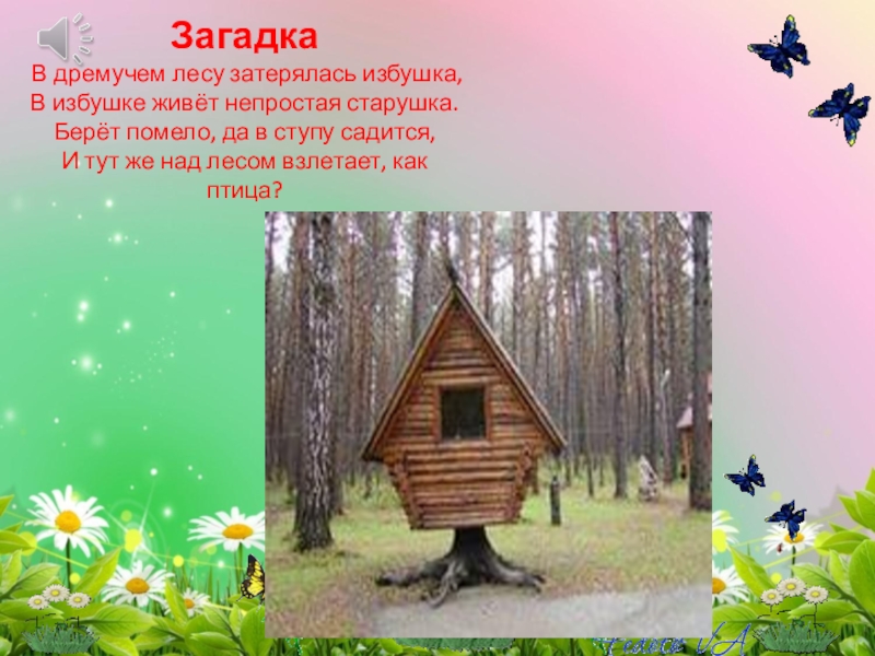 Загадка В дремучем лесу затерялась избушка, В избушке живёт непростая старушка. Берёт помело, да в ступу садится, И тут же над лесом взлетает, как птица?