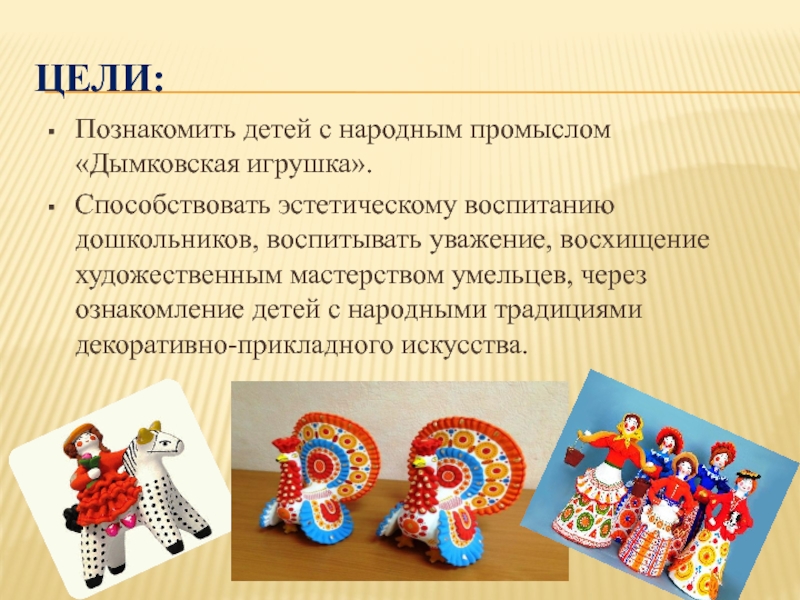 Познакомить детей с народным промыслом «Дымковская игрушка».