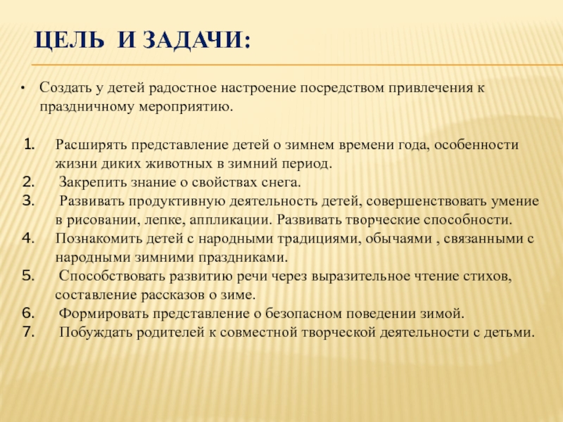 Создать у детей радостное настроение посредством привлечения к праздничному