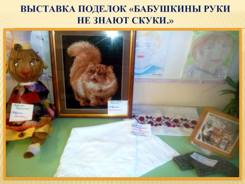 Слайд 9Выставка поделок «бабушкины руки не знают скуки.»
