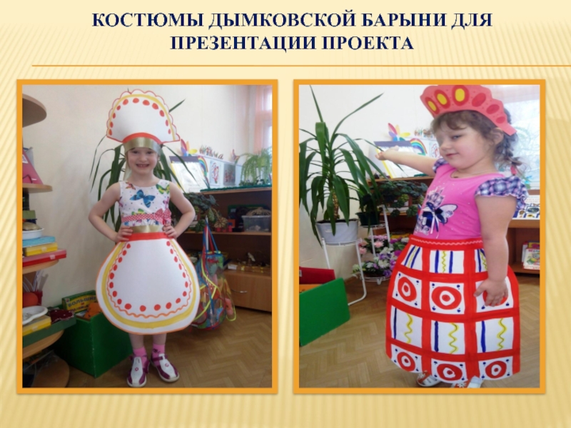 Слайд 44Костюмы дымковской барыни для презентации проекта