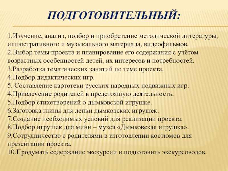 1.Изучение, анализ, подбор и приобретение методической литературы, иллюстративного и