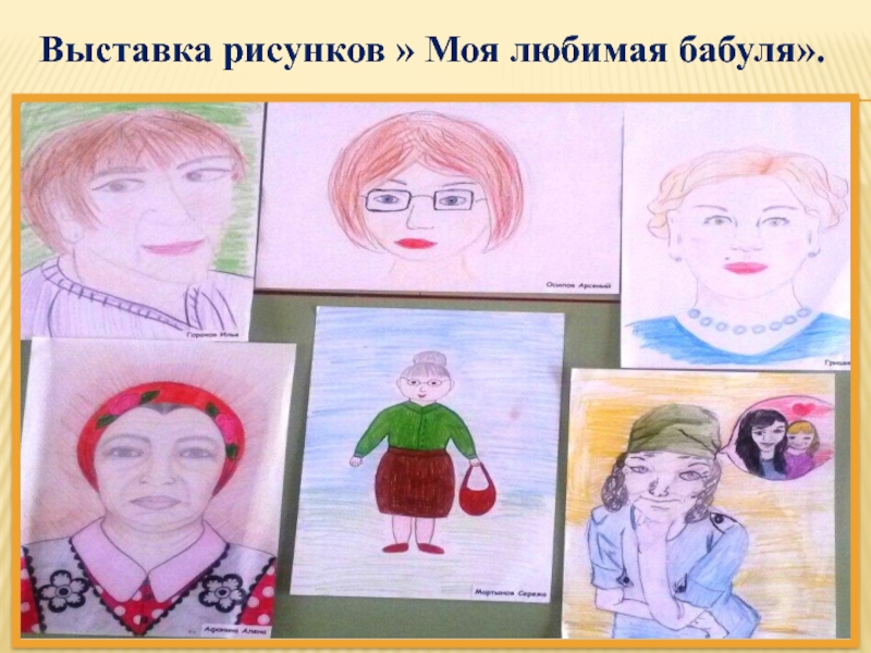 Слайд 7Выставка рисунков » Моя любимая бабуля».