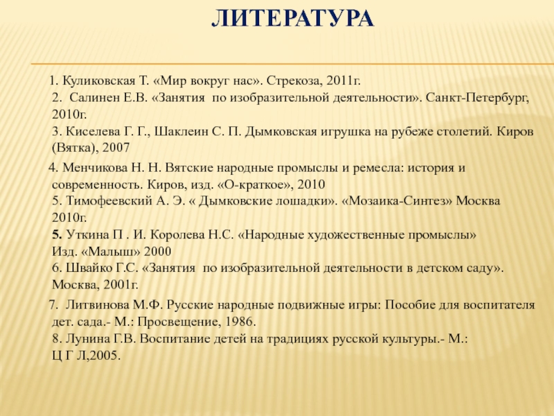 8. Лунина Г.В. Воспитание детей на традициях русской культуры.- М.: