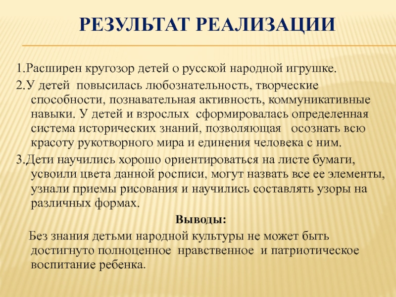 Без знания детьми народной культуры не может быть достигнуто полноценное нравственное и патриотическое воспитание ребенка.