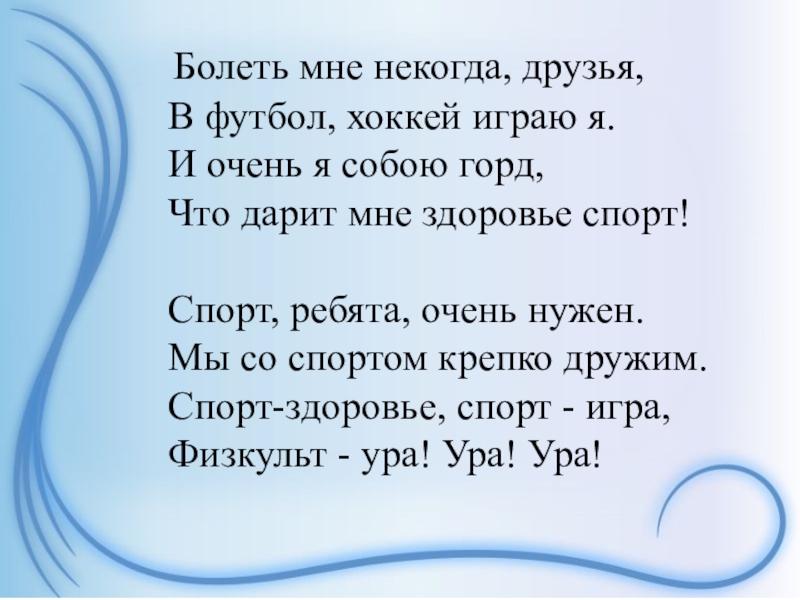 Слайд 40 Болеть мне некогда, друзья,