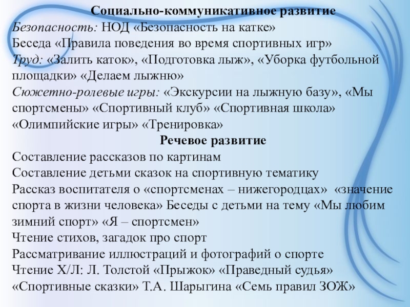 формированию представлений о спорте.