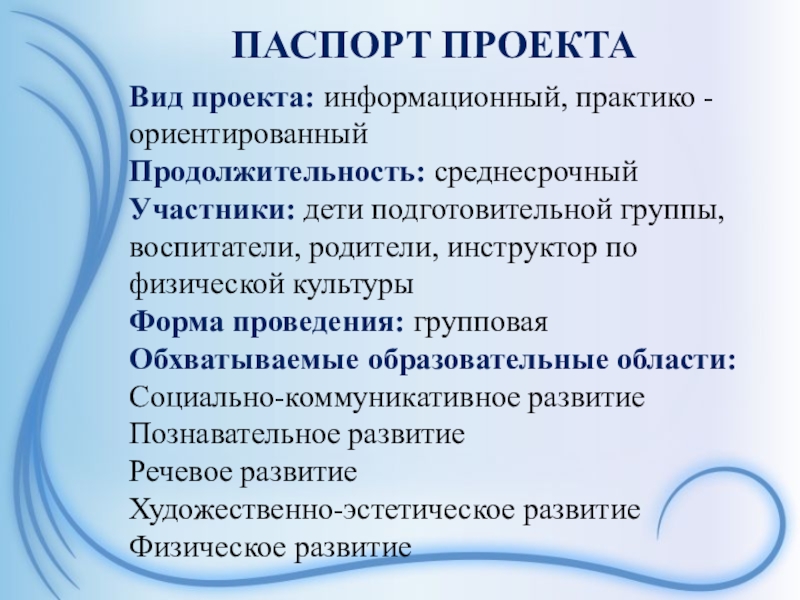 Слайд 2ПАСПОРТ ПРОЕКТА