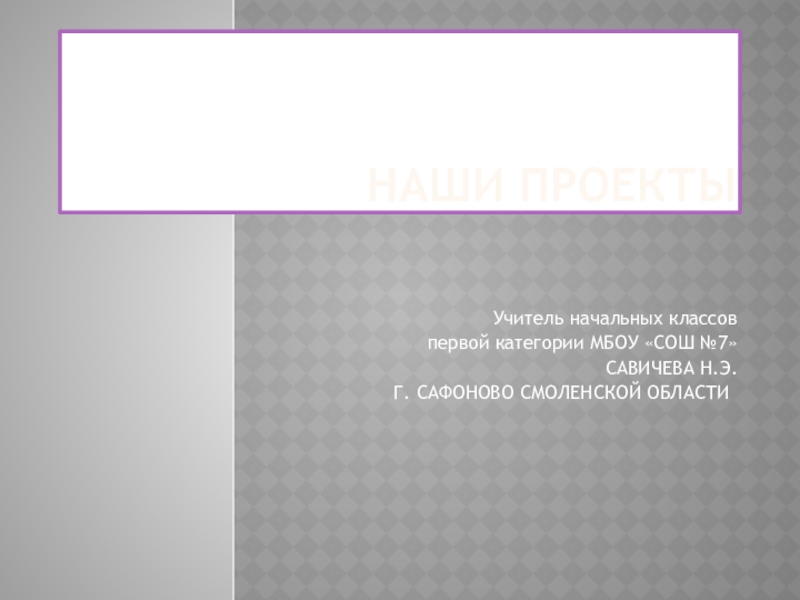 НАШИ ПРОЕКТЫУчитель начальных классов первой категории МБОУ «СОШ №7» САВИЧЕВА Н.Э.